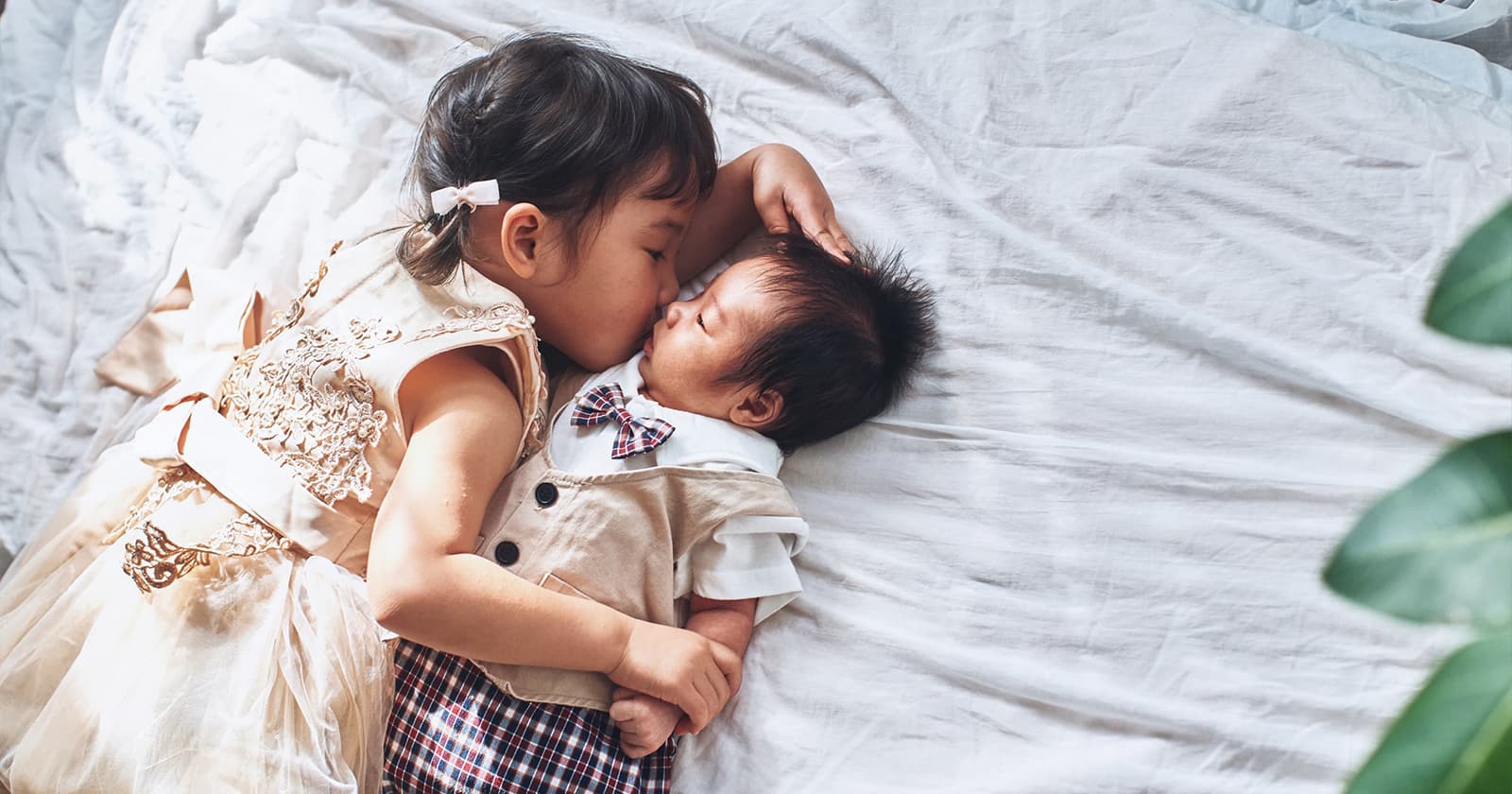 お姉ちゃんが弟の頭を撫でている瞬間、お兄ちゃんが妹をあやしている姿、きょうだいで笑い合っている表情。そういった「自然な関係性」が見える写真の方が、後から見返したときに、温かい気持ちになれることもあります。